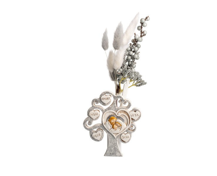 Bomboniera Harmony Icona Profumatore Albero della Vita con Sacra Famiglia e Pampas - Glitter in SILVER