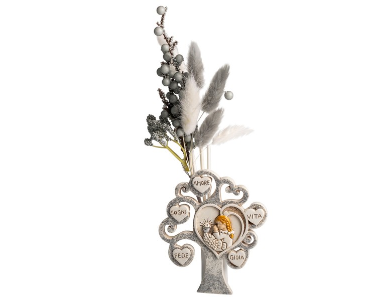 Bomboniera Harmony Icona Profumatore Albero della Vita con Bimba Comunione - Glitter silver