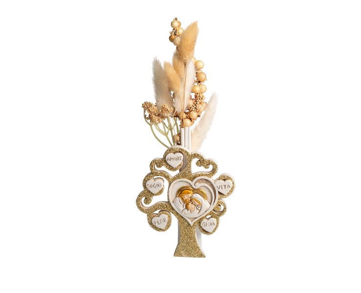 Bomboniera Harmony Icona Profumatore Albero della Vita con Sacra Famiglia e Pampas - Glitter in Gold