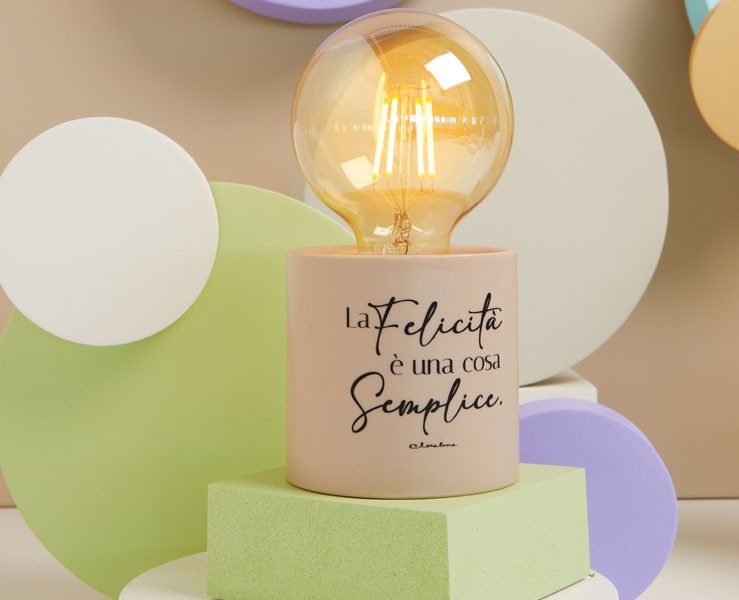 Questa elegante lampada LED tortora, decorata con la frase "La felicità è una cosa semplice", è un elemento di design raffinato e moderno. Con le sue dimensioni di 8,5 x 17 cm, illumina delicatamente l'ambiente, creando un'atmosfera calda e accogliente. Grazie al suo stile minimalista, si adatta perfettamente a qualsiasi tipo di arredamento, offrendo un tocco di classe e originalità.