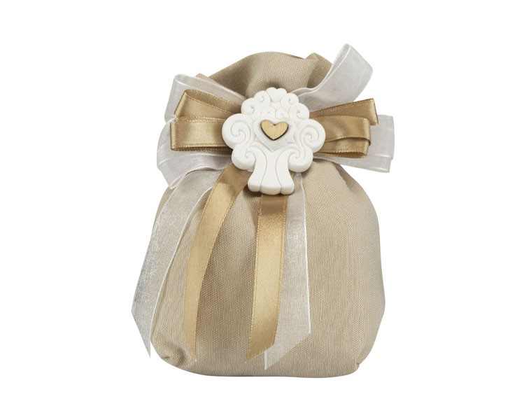 Sacchetto harmony cotone tortora con albero della vita gessetto con cuore legno