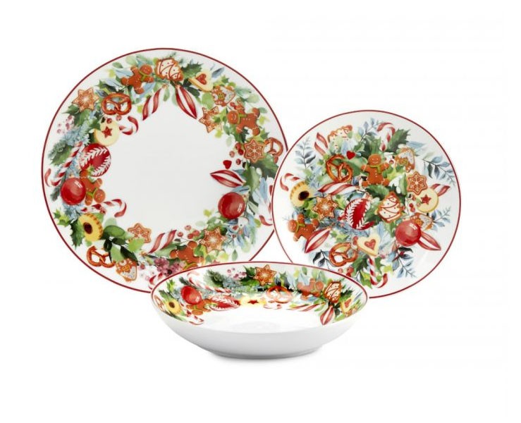 Set Tavola Natalizio 18 Pezzi - Eleganza Festiva per la Tavola di Natale