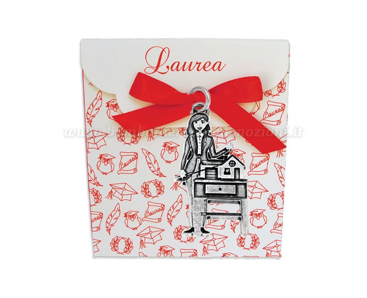 Bomboniera Laurea Architettura Ciondolo in bagno argento donna con scatolina portaconfetti