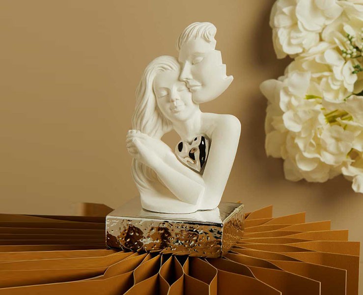 La collezione Claraluna 2026 esprime poesia e sentimento attraverso questa raffinata scultura di coppia innamorata, realizzata in porcellana bianca e impreziosita da un dolce cuore silver.
