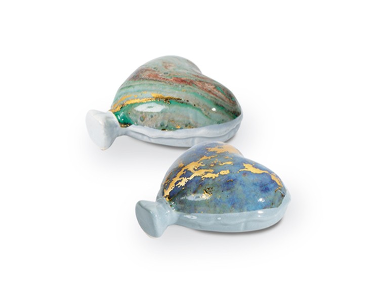 Eccellenza Artigianale e Design: I magneti sono realizzati con una particolare tecnica che riproduce l'eleganza delle pietre naturali. Sono disponibili in due varianti di colore assortite: una sui toni del verde smeraldo e terra, l'altra sulle sfumature del blu profondo e cobalto. Entrambi i modelli sono impreziositi da luminose venature color bronzo/oro che donano un tocco di lusso e unicità ad ogni pezzo. Con una dimensione di 5 cm, sono ideali per essere applicati su qualsiasi superficie metallica, portando un raggio di colore e solidarietà nella casa dei tuoi ospiti.