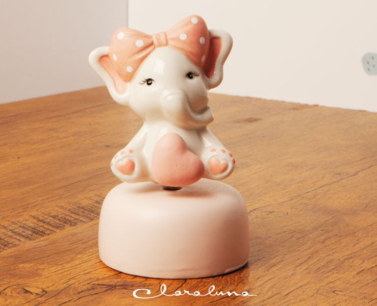 Bomboniera Claraluna Nascita Battesimo compleanno carillon elefante rosa