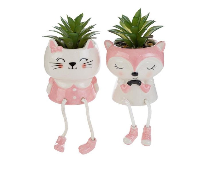 Bomboniera le stelle Piantina Animali in Porcellana rosa con Gambe Pendenti e Shopper