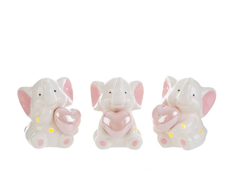 Bomboniera battesimo le stelle Elefantino in Porcellana con LED rosa 3 Assortiti