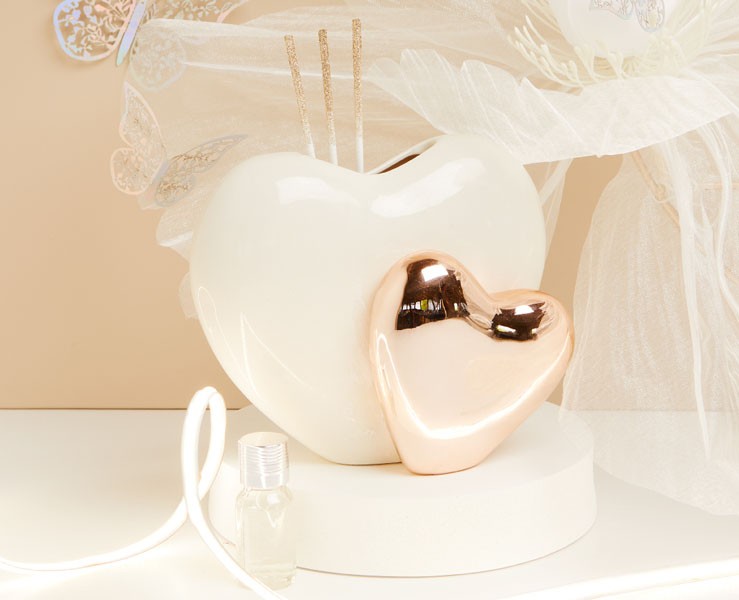 Diffusore Doppio Cuore Bianco e Oro Rosa - Claraluna