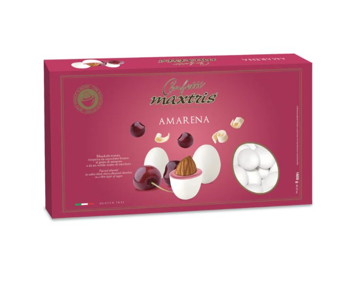 Sorprendi i tuoi ospiti con i Confetti Maxtris Amarena, un simbolo di gusto e qualità per i tuoi eventi speciali.