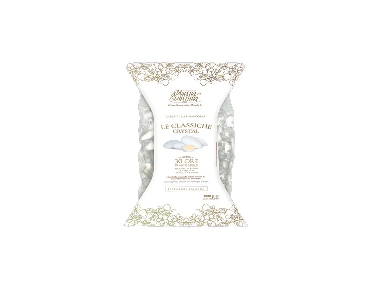 Dalla raffinata selezione dei Maestri Confettieri Maxtris, realizzato con una mandorla pelata calibro 40, questo confetto, Crystal Almond Bianco, è avvolto da un sottilissimo strato di zucchero che ne esalta il gusto e la croccantezza. Ogni confetto è incartato singolarmente, garantendo freschezza e praticità, perfetto per occasioni eleganti e momenti di dolcezza da condividere.