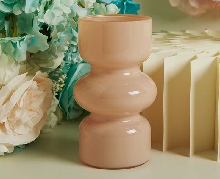 Il Vaso Tubo Rosa è un accessorio di design contemporaneo che si distingue per la sua silhouette moderna e la sua delicata colorazione. Realizzato in vetro soffiato rosa lucido, presenta una forma allungata e segmentata che ricorda elegantemente una clessidra o una serie di bolle sovrapposte.