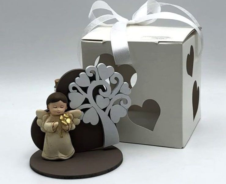 Bomboniera Comunione Cresima Mariella Martini angelo con albero della vita