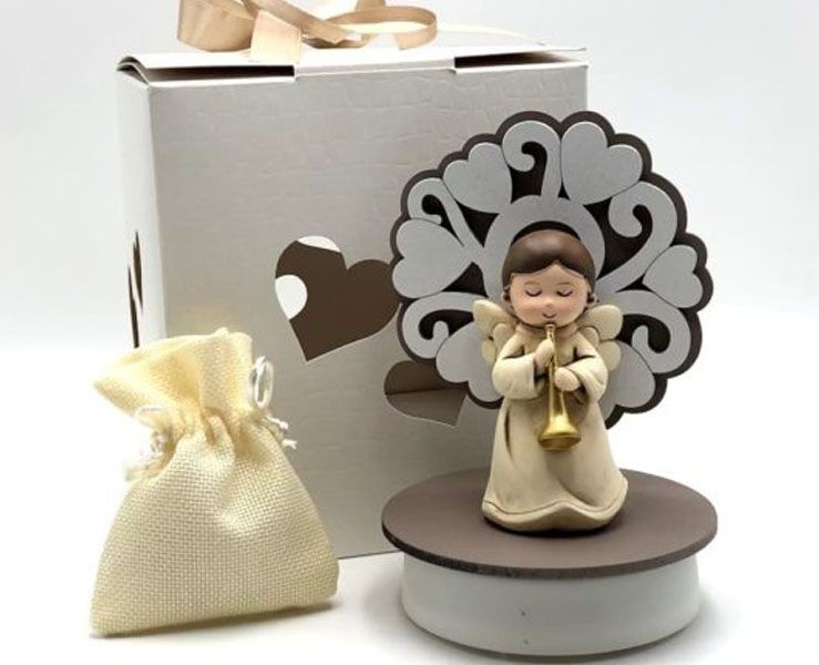 Bomboniera battesimo Comunione Cresima Mariella Martini angelo su carillon