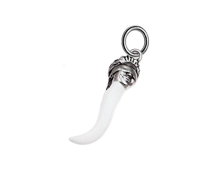 Porta fortuna e tradizione si incontrano in questo elegante ciondolo a forma di corno bianco, arricchito da una raffinata raffigurazione della dea bendata in bagno d’argento. Un simbolo di buon auspicio perfetto come bomboniera per qualsiasi evento speciale, dal matrimonio, compleanni, laurea e tante altre.