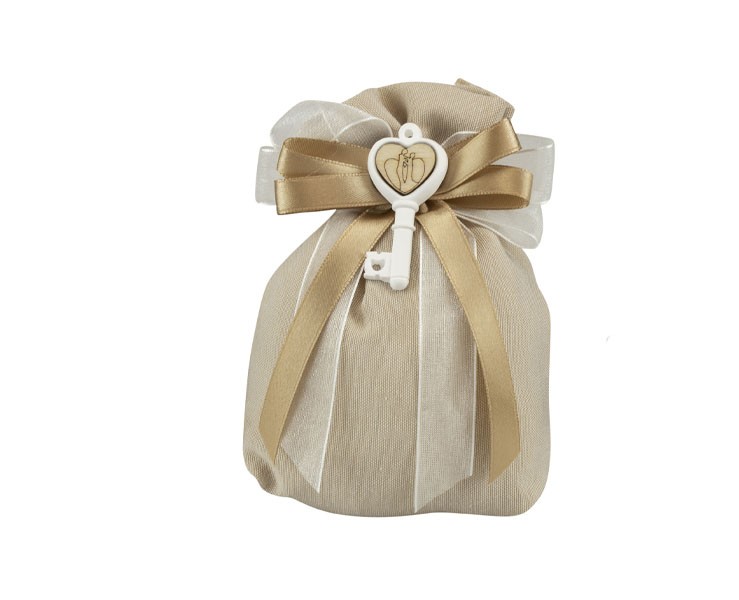 Sacchetto harmony cotone tortora con chiavetta gesso wedding