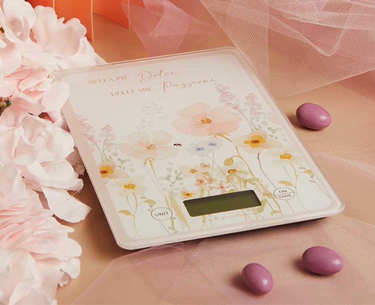 Bomboniera Matrimonio Claraluna 2026 Bilancia Digitale Rettangolare Decoro Floreale Rosa