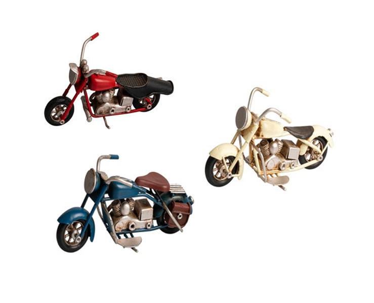 Porta a casa il dinamismo e lo stile con queste moto in metallo disponibili in tre colori: rosso, crema e blu. Perfette come bomboniere per eventi speciali o come decorazioni dal gusto retrò, rappresentano un’idea originale per sorprendere chi ama il fascino delle due ruote.
