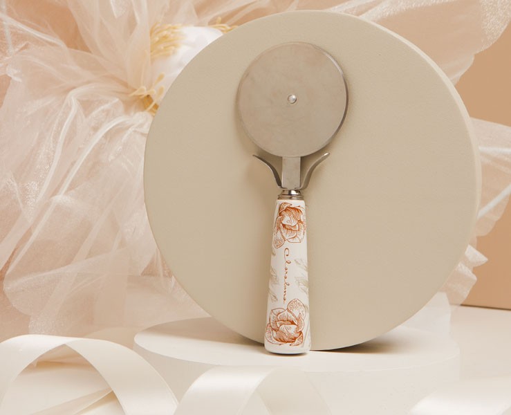 Questo raffinato tagliapizza con manico decorato a tema rose è un’idea unica per le bomboniere di matrimonio. Unisce funzionalità ed eleganza, rendendolo un regalo pratico e memorabile per gli ospiti.