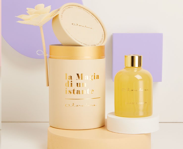 La bomboniera viene presentata in una scatola regalo cilindrica, elegante e delicata, perfetta per esaltare il design romantico del diffusore.