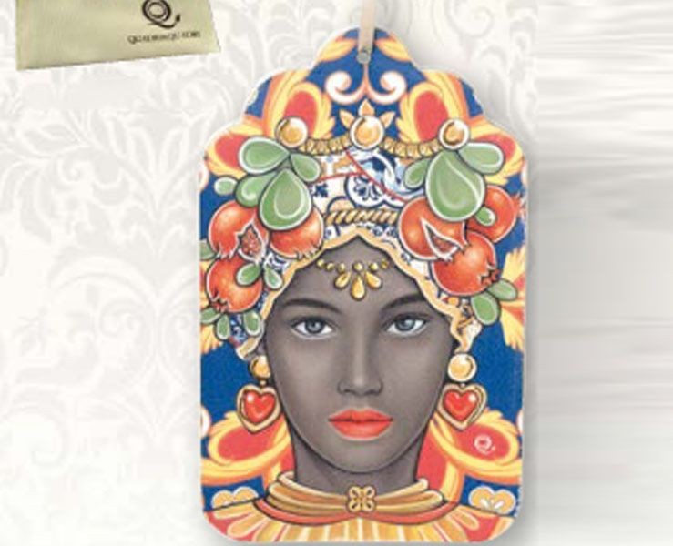 BOMBONIERA MATRIMONIO TESTA DI MORO DONNA DECORATO ROSSO E BLU