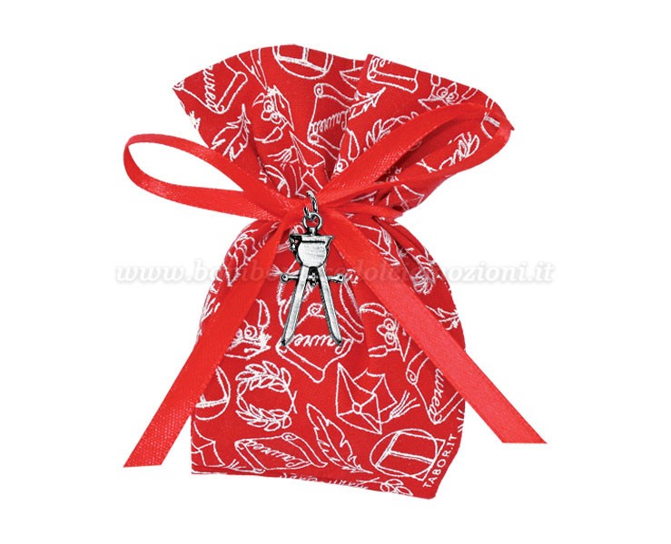 Bomboniera Laurea Architettura ciondolo in bagno argento compasso con sacchetto