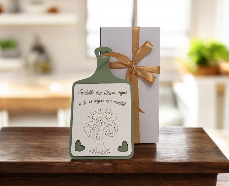 Regala un simbolo di amore e speranza che decori con grazia la casa dei tuoi cari con questo esclusivo tagliere motivazionale.