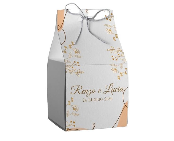 Scatolina porta confetti personalizzata quadrata decoro floreale gold