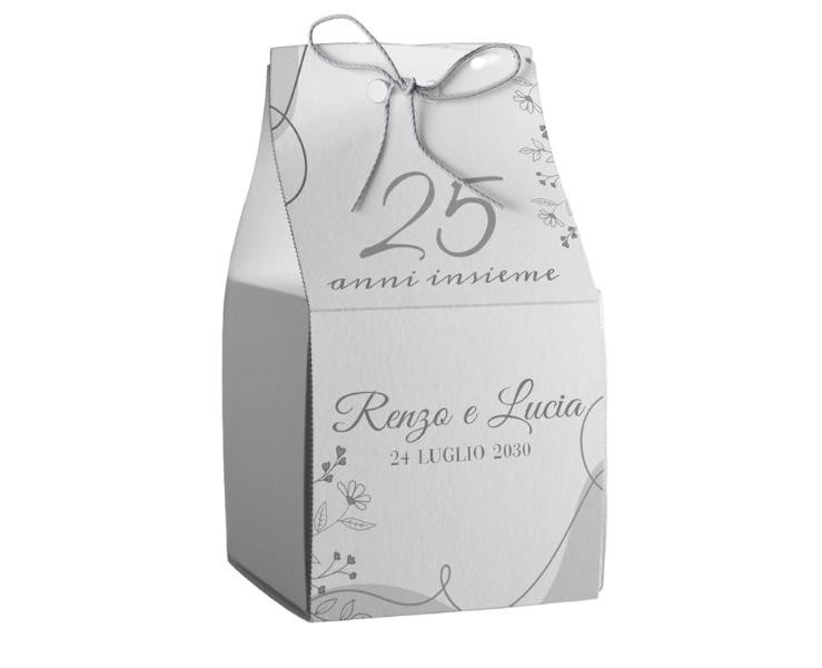 Scatolina porta confetti personalizzata quadrata decoro floreale argento 25