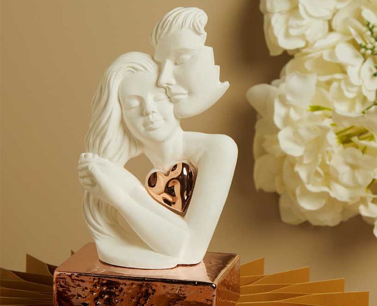 La collezione Claraluna 2026 celebra l’unione più pura attraverso questa splendida scultura di coppia innamorata, realizzata in porcellana bianca e impreziosita da un raffinato cuore in oro rosa.
