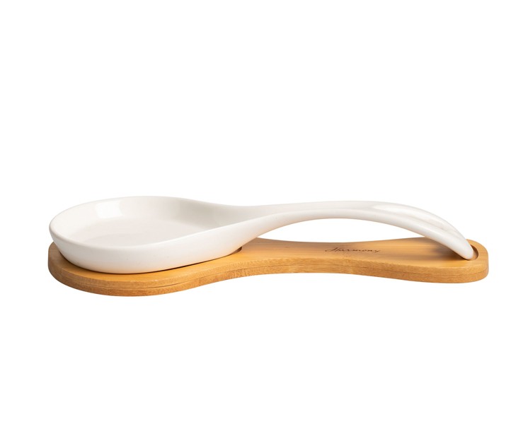 - Design: Base sagomata in bamboo e mestolo in porcellana.