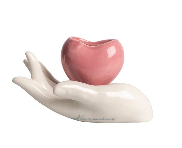 Candela Cuore Rosa su Mano in Porcellana Bianca