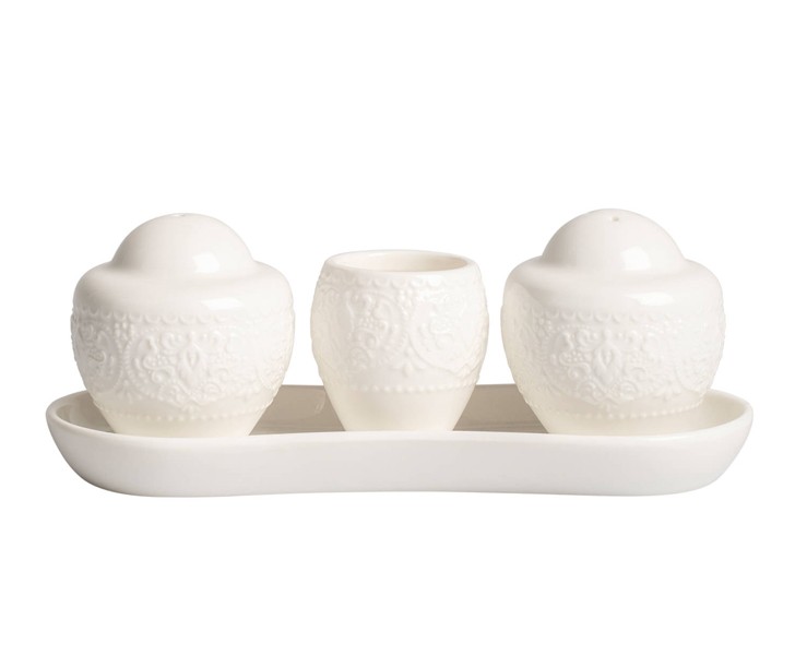 Bomboniera Matrimonio Harmony Set sale e pepe con porta stuzzicadenti e vassoio porcellana decalco alice