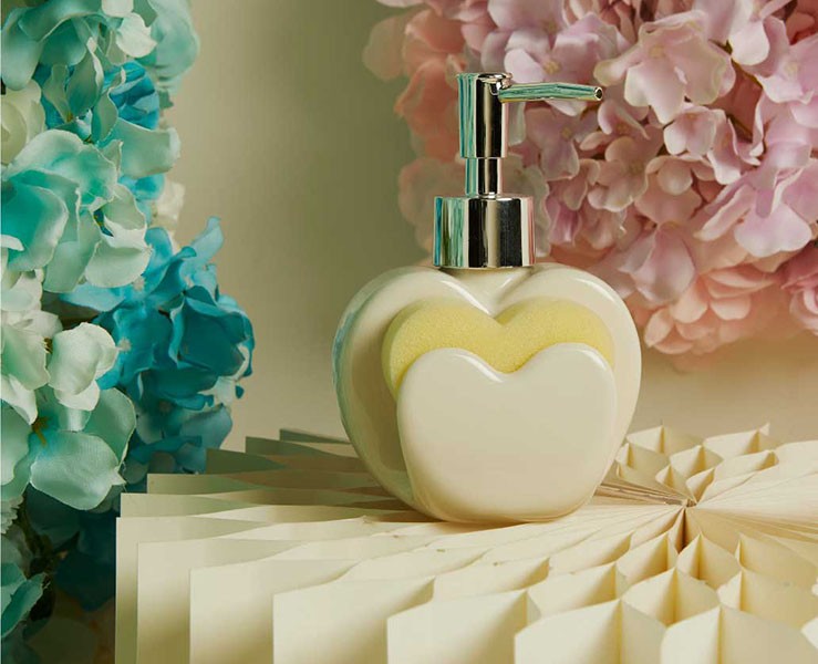 Realizzato in ceramica bianca con doppio cuore in rilievo, questo dispenser porta con sé un messaggio di cura e dolcezza, trasformando ogni bagno o cucina in uno spazio più armonioso.