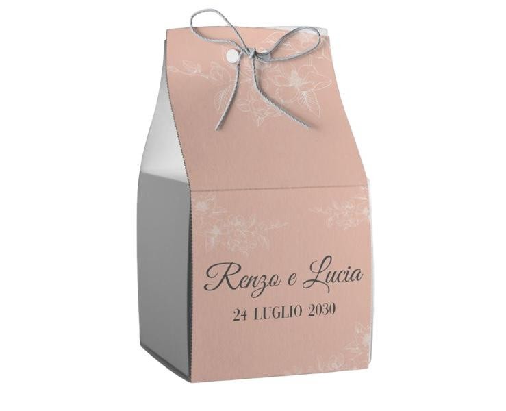 Scatolina porta confetti personalizzata quadrata decoro rosa antico e floreale bianco