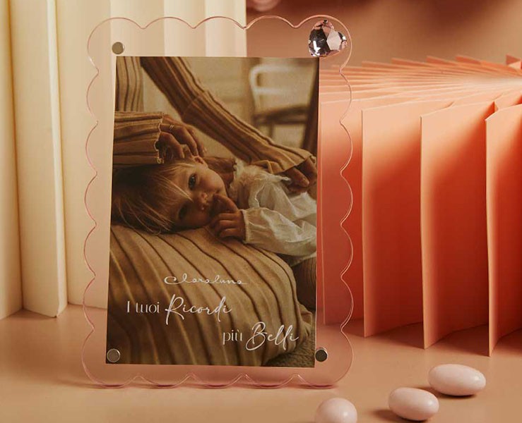 Incornicia i tuoi momenti speciali con un design che aggiunge dolcezza e un cuore scintillante.