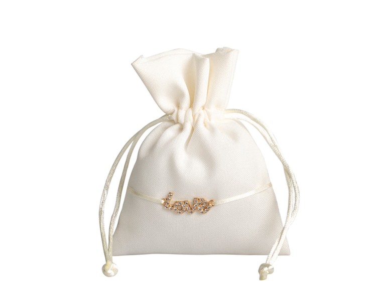 SACCHETTO PANNA COTONE CON APPLICAZIONE ORO "LOVE"