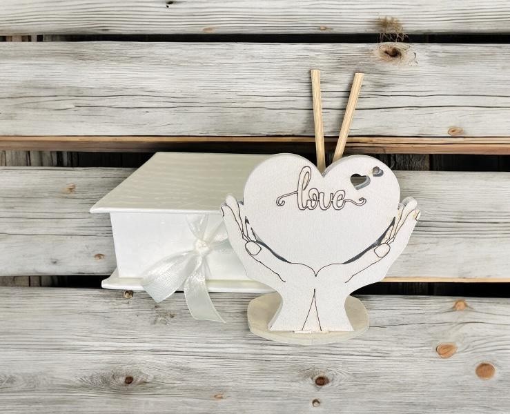 Bomboniera Matrimonio Mariella Martini Profumatore Cuore Mani con Scritta Love