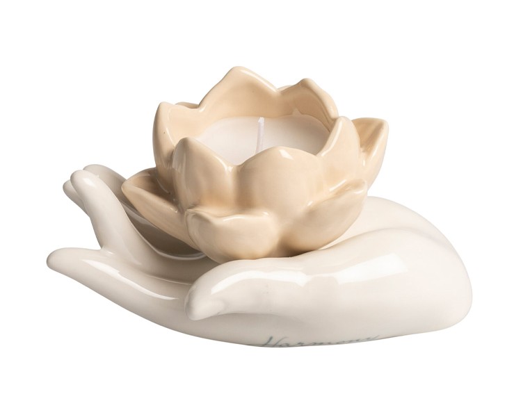 Candela Fiore tortora su Mano in Porcellana Bianca