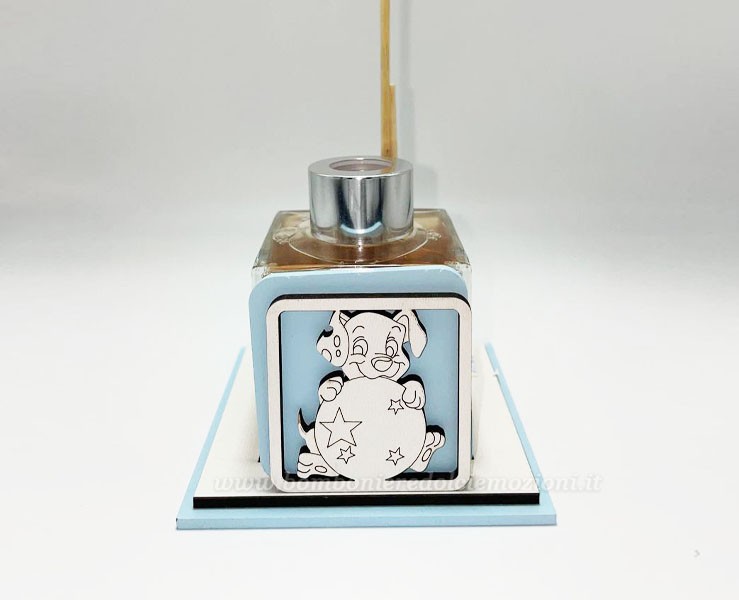 Bomboniera Nascita e Battesimo Mariella Martini Profumatore con applicazione cane e palla azzurro