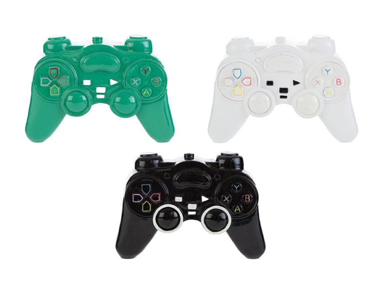 - Salvadanaio a forma di joystick in resina, disponibile in 3 colori assortiti (nero, bianco, verde)