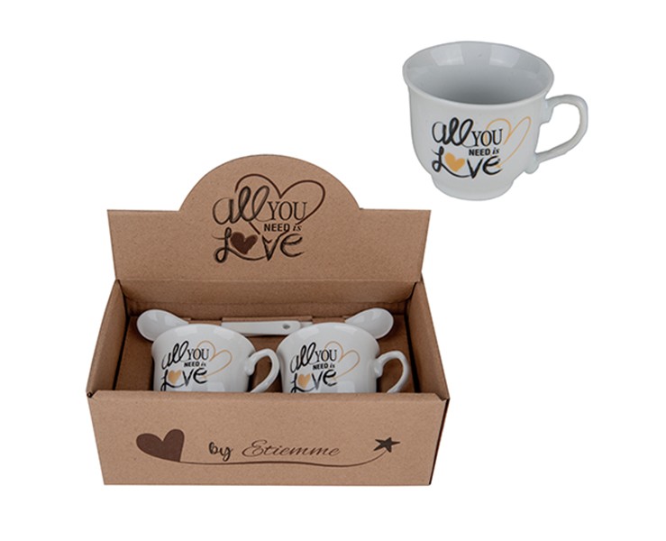 Bomboniera Set Caffè 2 Pezzi All You Need is Love con Cucchiaini e Scatola Kraft