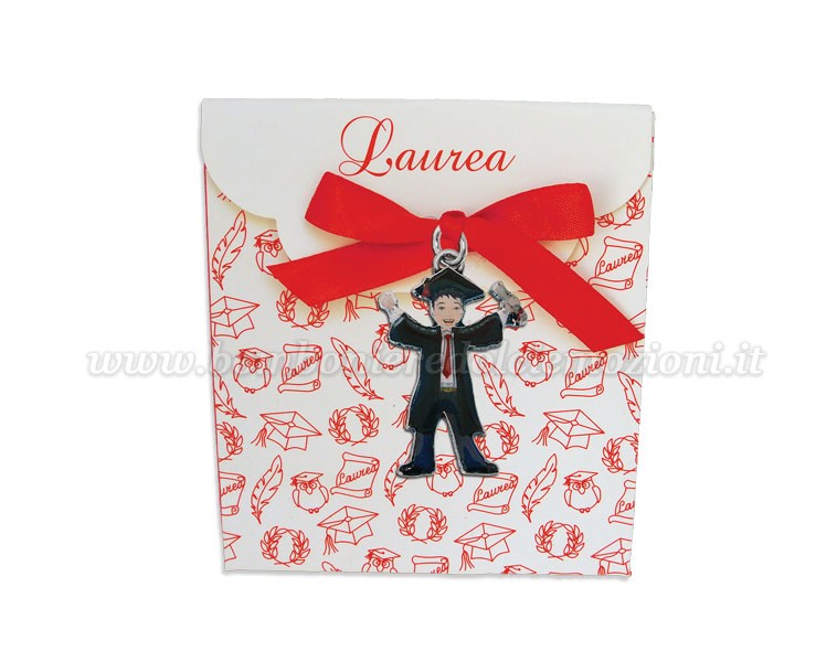 Bomboniera Laurea uomo - Ciondolo in bagno argento Smaltato con Scatola Rossa