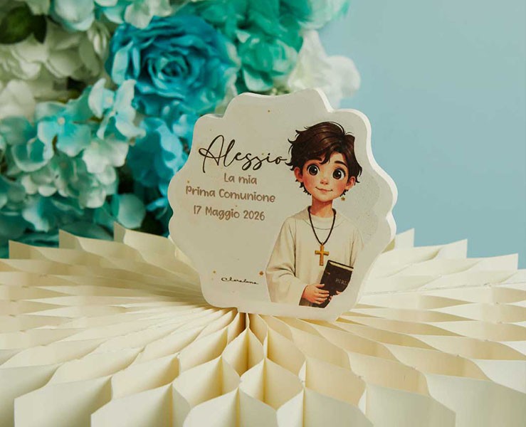 Bomboniera Claraluna Icona Placca Comunione Maschio Personalizzabile