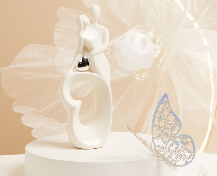 La collezione Claraluna 2025 offre una bomboniera raffinata: la coppia di sposi con cuore color silver, dalle dimensioni di 6,3 x 4,5 x 17 cm. Questo simbolo d'amore eterno è perfetto per aggiungere un tocco romantico a matrimoni, anniversari e altre occasioni speciali.