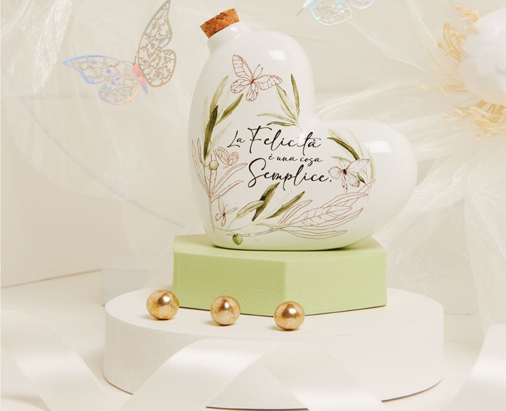 La collezione Claraluna 2025 presenta una bomboniera dal design semplice e raffinato: l'oliera GRANDE a forma di cuore, realizzata in porcellana di alta qualità. Perfetta per matrimoni, anniversari, comunioni e altre ricorrenze speciali, questa bomboniera rappresenta un regalo utile ed elegante.