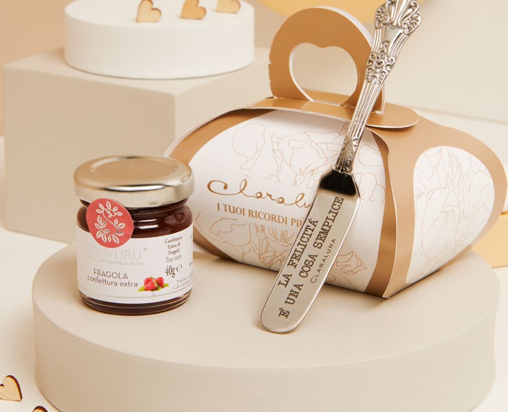 Un’idea raffinata e golosa per celebrare momenti speciali: la bomboniera Claraluna con marmellata Frutti di bosco da 40 g, accompagnata da un elegante coltellino inciso. Questo set esclusivo unisce il gusto della crema alla nocciola con la praticità di un coltellino, ideale per essere gustata durante le colazioni o le merende. Perfetta per matrimoni, battesimi, comunioni e altre celebrazioni.