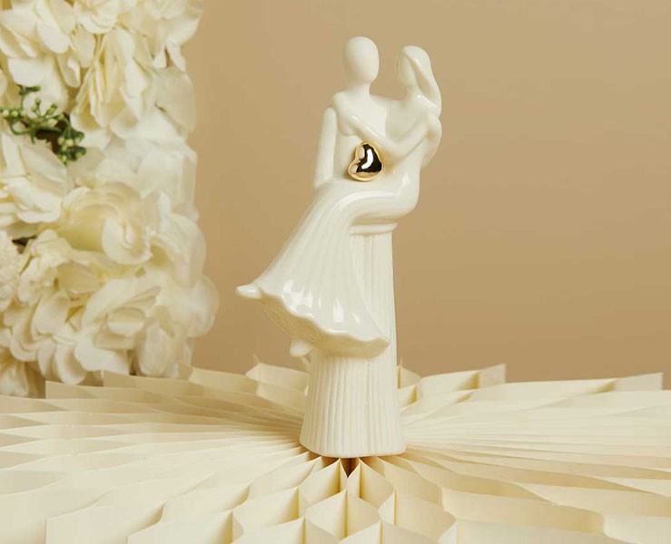 La collezione Claraluna 2026 celebra l’unione più pura con questa raffinata scultura in porcellana: una coppia di sposi avvolta in un abbraccio armonioso, impreziosita da un cuore in elegante finitura oro.