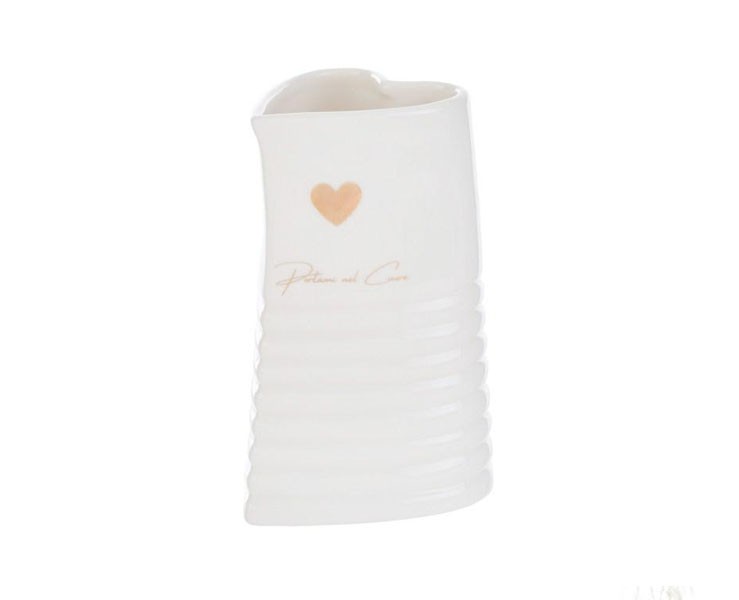 Questo vaso in porcellana bianco è l’emblema della semplicità e dell’eleganza. Con la sua forma moderna e la decorazione a cuore dorato, è perfetto come bomboniera per matrimoni, anniversari, battesimi o comunioni. Un complemento raffinato per decorare ogni ambiente e un dono prezioso per i tuoi ospiti.