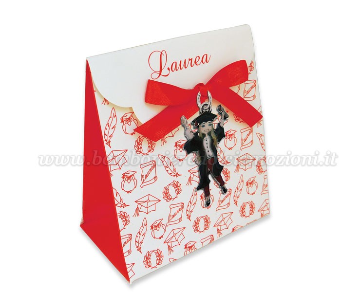 Bomboniera Laurea Donna - Ciondolo in bagno argento Smaltato con Scatola Rossa